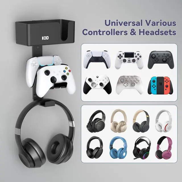 Universal StandThis wall mount holder fit most gamepads for Xbox One, 360, PlayStation PS3, PS4, PS5, Xbox Series S/X, Xbox One, Switch Pro, Nintendo Switch, as well as all types gaming headsets.