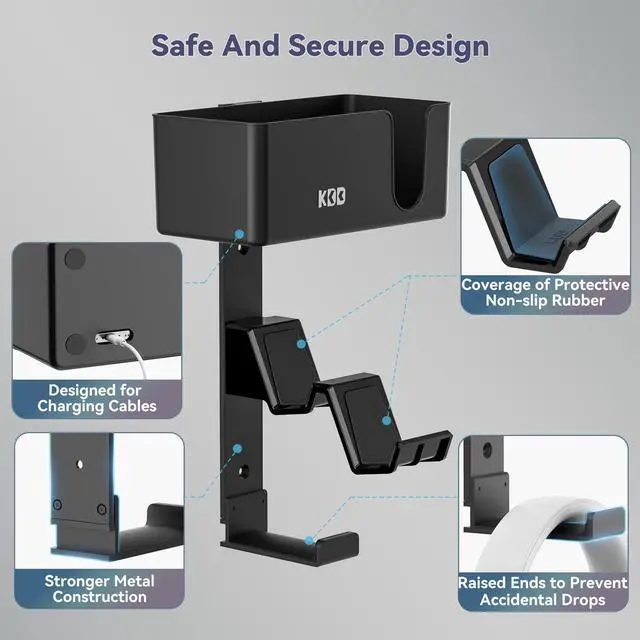 4 in 1 Unique DesignThe 4-in-1 wall mount holder not only holds two controllers and gaming headset, but it also comes with a removable storage box for media remotes, mobile phones, speakers, and more as needed.