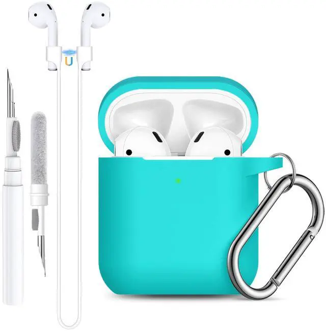 for AirPods Case 1st/2nd Generation Cover, Soft Silicone Full Protective Cover with Cleaner Kit and Magnetic Anti-Lost Cord, for Airpods Case with Keychain Front LED Visible, Teal