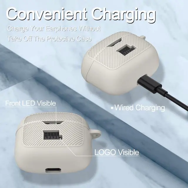 Case Cover, Soft Silicone Protective Earbuds Case Front LED Visible, Only Compatible with Tune Buds, Headphones Case with Carabiner Accessories Set(Off-White)