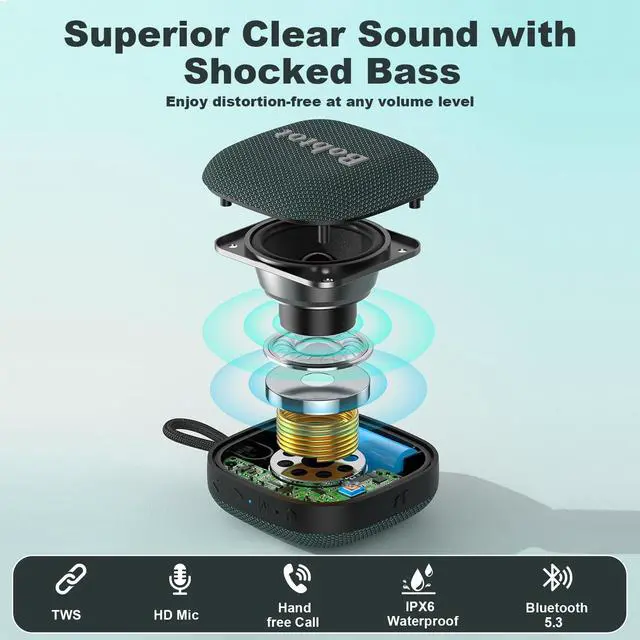 Amazing Sound & Deep Bass - The portable Bluetooth speaker provides immersive sound with an advanced digital signal processor, delivering crisp treble, detailed mids, and enhanced bass at any volume. Enjoy incredible sound at home, on the trip, or anywhere else.