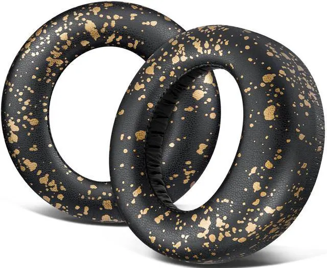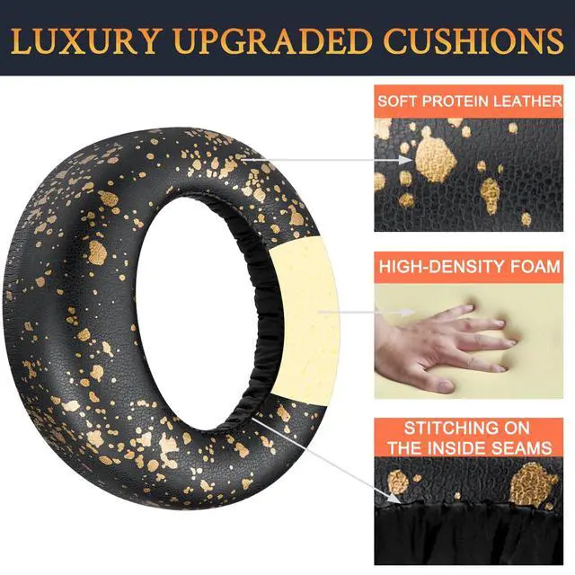 Earpads Cushions Replacement for PlayStation 5 Pulse 3D Wireless Headset, Ear Pads Cushions with Soft Protein Leather, Noise Isolation Foam - Black Gold