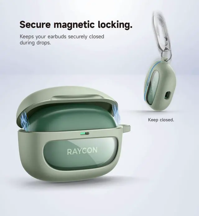 Secure Magnet-LockingBuilt with 4 ultra-strong magnets that snap the top and bottom pieces securely together, this shockproof case ensures your true wireless in-ear buds stay firmly closed even during falls from up to 7ft.