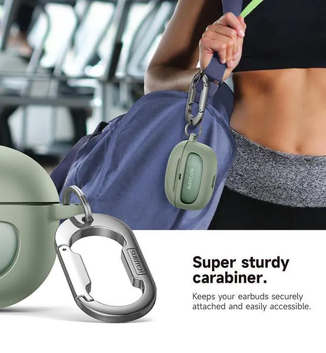 Easy access on the goWith a super sturdy, anti-rust carabiner and keyring, this bumper case for true wireless earbuds can be securely clipped to your bag, backpack, or belt loop, allowing you to easily reach your earbuds whenever you need them.