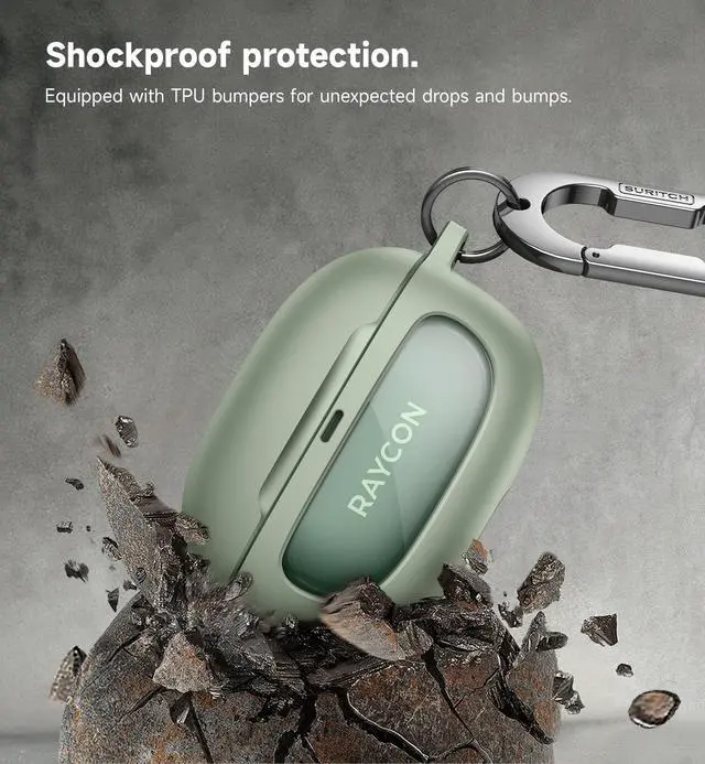 Reliable drop protectionThis protective case is made with a shock-absorbing TPU shell and a sturdy PC window, designed to provide robust protection against damage while keeping the earbuds logo visible.