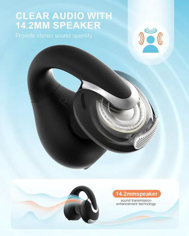 CLEAR AUDIO & IMMERSIVE SOUND QUALITY: The bone conduction earbud features a 14.2mm speaker, delivering rich stereo sound with deep bass and crisp treble. Utilizing bone conduction technology, you can hear everything around you while enjoying private sound, maintaining auditory awareness of your surroundings.