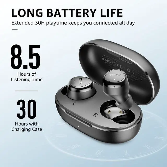 [Extended Battery Life & Easy Charging] Each earbud has a 40mAh capacity for 8.5 hours of non-stop play. Swap them out in turn for all-day use and youll get a massive 60 hours of total playtime, thats 900 songs! The USB-A to USB-C charging works with most phone chargers, and the three-color battery level indicator lets you easily monitor remaining power, hassle-free on the go.
