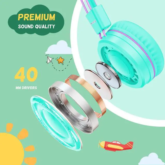 Stereo SoundThese wired kids headphones come with a built-in 40 mm audio driver to ensure excellent sound quality, making them perfect for studying, listening to music, watching movies, playing games, talking with friends, and having fun at home, in school, or while traveling. They are also ideal for online courses and voice calls.