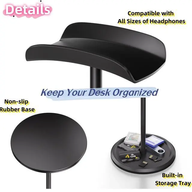 • Universal Compatibility Designed to fit most headphone models, this stand offers broad compatibility, making it suitable for a wide range of headphones. Whether you have large over-ear headphones or smaller on-ear models, this stand provides a secure and stable storage solution. NOTE: ONLY HEADPHONE STAND