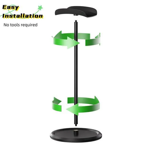 • Stable & Secure The base of this headphone holder features an alloy counterweight, significantly enhancing the stability of the stand. This ensures your headphones remain securely in place. For best results, make sure the desk surface is flat and clean when placing the stand.