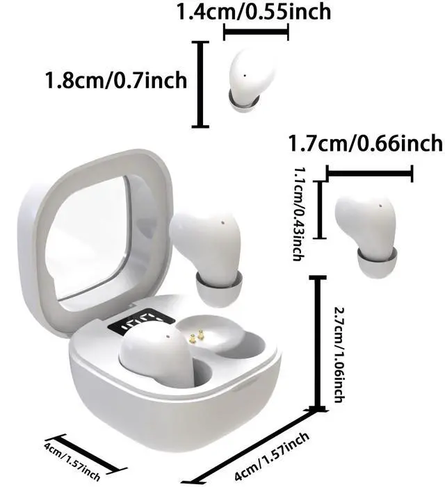 Mini & Lightweight Design: Our compact wireless earbuds are designed for comfort. Weighing merely 0.1 oz, they offer a snug, low-profile fit. Please check our detailed size-dimension image (in photo #2) to ensure a proper fit for your ears.