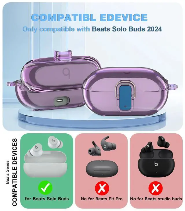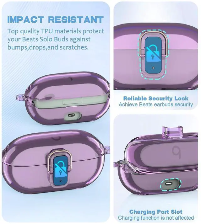 Compatible Models: The security locks clear case covers are specially designed for Beats Solo Buds earphone. This cover is designed with a transparent appearance to show off the original beauty of your earbuds.