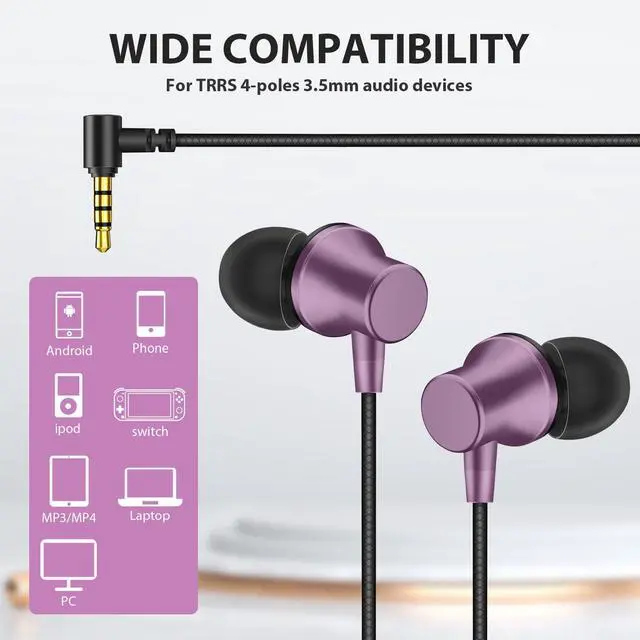 3.5mm Aux Jack Wired Earbuds: 3.5mm audio jack earbuds compatible with a wide range of devices, including PCs, laptops, Kindles, and various Android phones and tablets. Perfect for any device equipped with a 3.5mm audio jack.