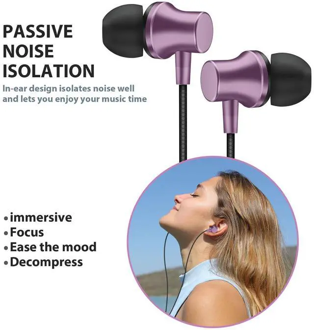 Earbuds for School Chromebook Laptop PC, Noise Isolating Ear Buds with 3.5mm Plug in Audio Jack Microphone HiFi Stereo Wired Headphone Corded Earphone for Kindle Fire School Travel MP3, Purple