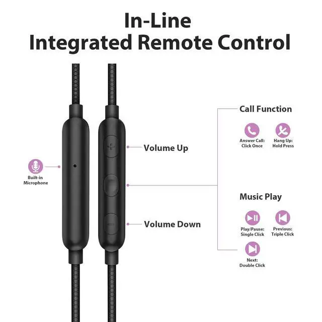 In-Line Control & Built-in Mic: Featuring in-line controls for play/pause, volume adjustment, and answering calls. The high-sensitivity microphone offers clear call quality, making it ideal for work, sports, and outdoor activities.