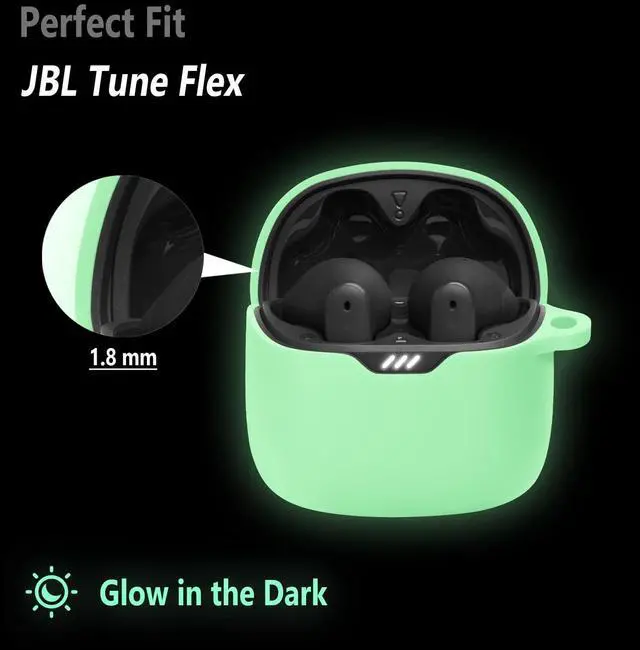 Silicone Case for Tune Flex, Protective Cover with Carabiner (Luminous Green)