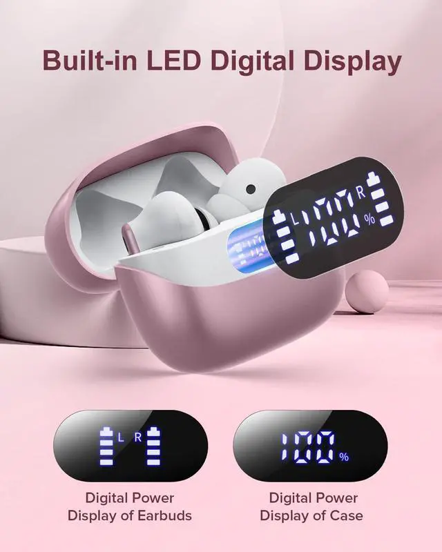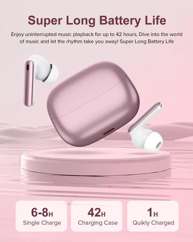 Super Long Battery Life: With long-lasting battery life, the wireless earbuds can be used continuously for up to 42 hours with the charging case, allowing you to enjoy uninterrupted use throughout the day. The bluetooth headphones feature a digital LED display for easy viewing of remaining power.