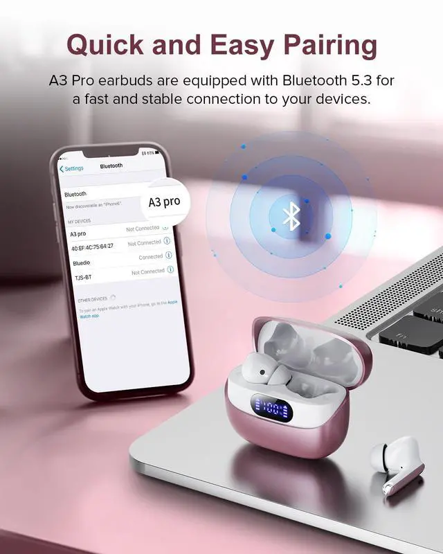 Fast and Stable Connection: Our wireless bluetooth headphones are equipped with superior Bluetooth 5.3 technology, providing fast and stable transmission speed with low latency. You can connect these bluetooth earbuds within 15 meters without interruption, ensuring a seamless listening experience.