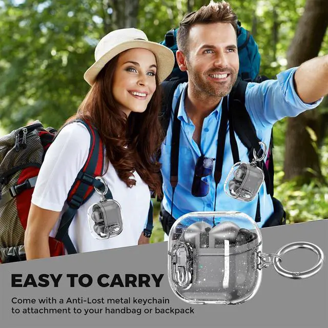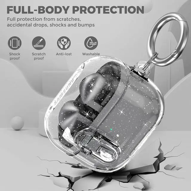 Compatible with Galaxy Bud 3 Pro Case/Buds3/Buds 3 FE Case Clear Lock Clip with Cleaner Kit, Transparent TPU Protective Cover Men Women with Carabiner, Glitter Clear