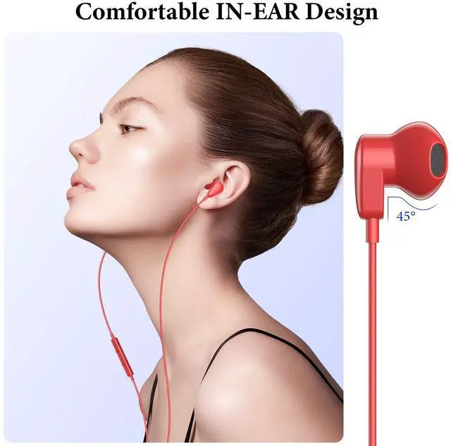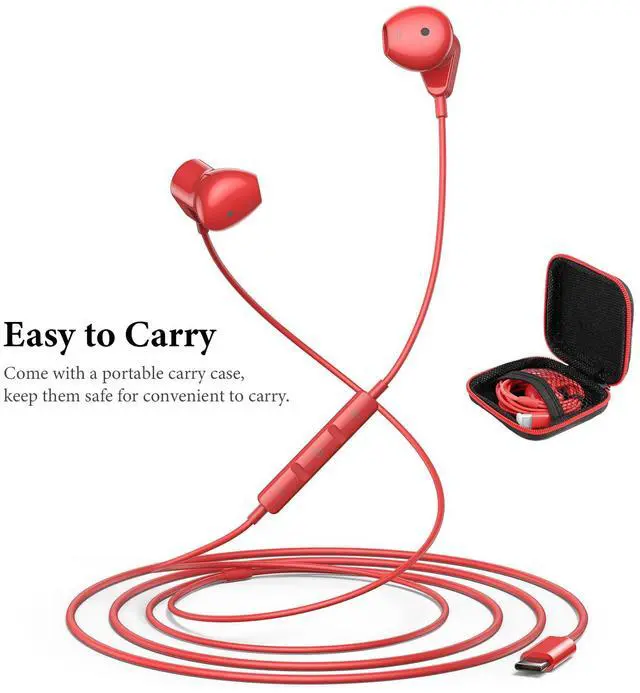 Red USB C Wired Earbuds with Microphone: These earbuds come with in-line remote control buttons and a built-in HD microphone for clear phone calls and an enhanced gaming experience. You can respond to calls and control your playlist or video without picking up your phone, making them convenient for on-the-go use. The cardinal-red color is noticeable, making it easy to find them.