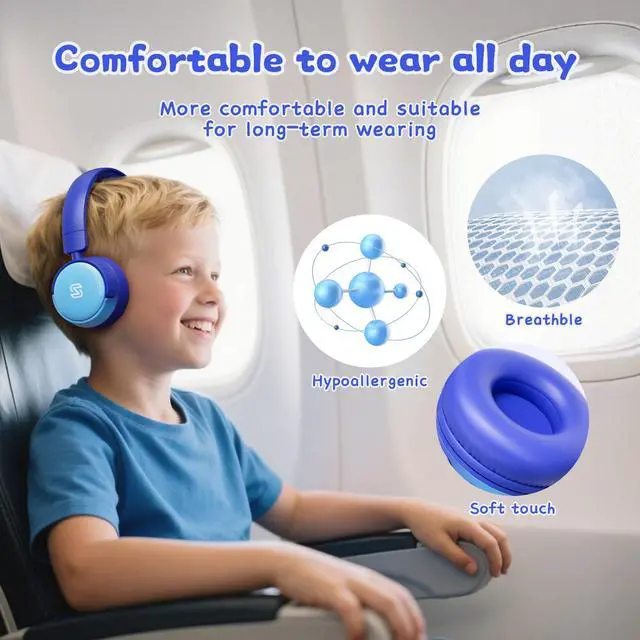 All-Day Comfort & Fit: Featuring memory foam ear cushions with breathable lining and soft protein leather ear cups. The 90° rotating ear cups and 6-position adjustable headband create a tailor-like fit for ages 2+. At approximately 0.3 lbs, they significantly reduce ear pressure during travel.