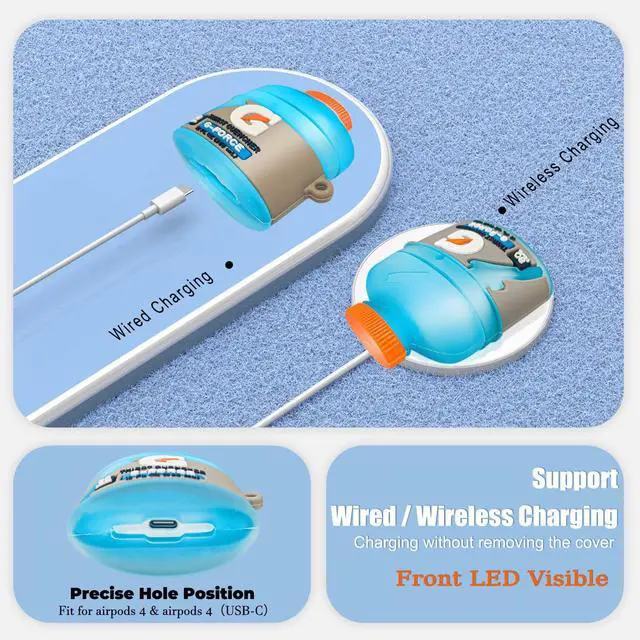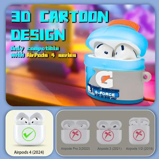 [3D Cartoon Look] Unique Funny & Kawaii! Personalized food appearance Sport Water design airpods 4 protective cover, make your airpod 4 charging case look fashionable and chic. Designed for boys, girls, teens, kids, couples, etc.