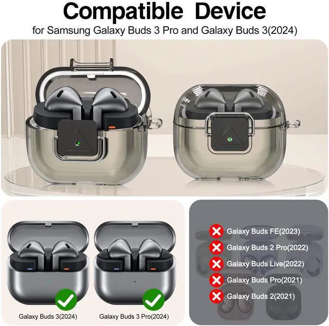 Compatible Device: This clear case with secure lock clip is specifically designed for Galaxy Buds 3 FE (2025) / Buds 3 Pro (2024) / Buds 3 Case (2024); earbuds and charging case are not included.