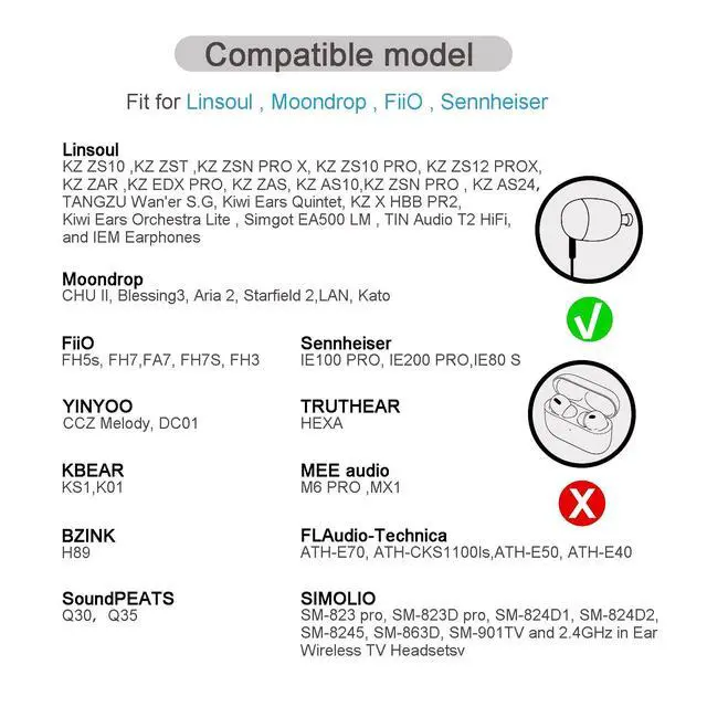Compatibility: The memory foam replacement ear tips fit various models including ZS10 Pro X, ZSN, EDX PRO, AS10, ZST, IE 200 Pro, TV headsets, FH5S, FH7S, FA7, HEXA, KBEAR KS1, MEE M6 PRO, MX1, BZINK, and FLARE AUDIO.