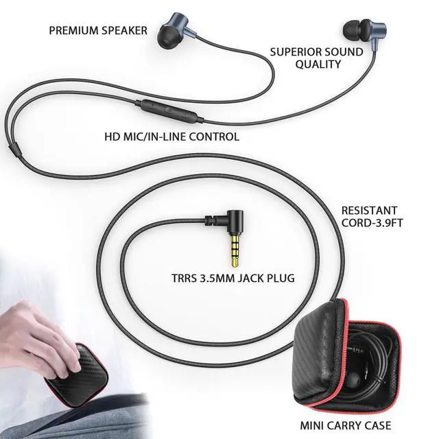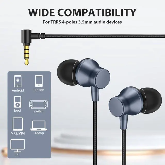 3.5mm Aux Jack Wired Earbuds: 3.5mm audio jack earbuds for PC/Laptop/Kindle Fire, compatible with various Samsung A and Note series, iPhone SE/6s/6 plus/6s Plus/6/5s/5c/5, iPad Mini/Air, iPod touch 5, as well as Android phones, tablets, Chromebooks, Windows devices, MP3/MP4, and other devices with a 3.5mm audio jack.