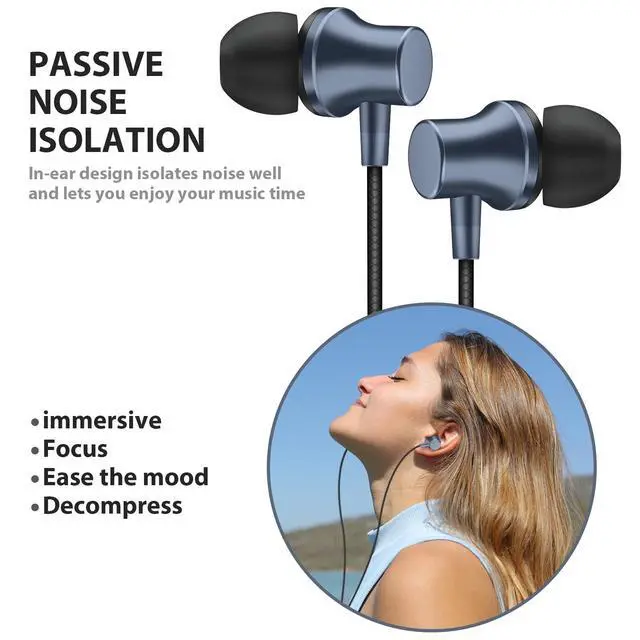 Earbuds for Chromebook Laptop PC, Noise Canceling Ear Buds with 3.5mm Plug in Audio Jack Microphone HiFi Stereo Wired Headphone Corded Earphone for Kindle Fire School Travel MP3, Blue