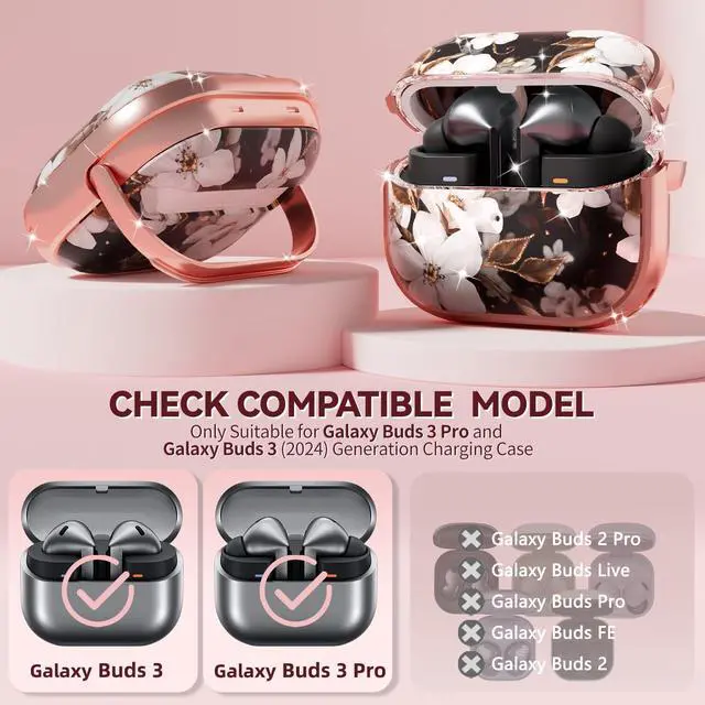 Check Your Model: This clear flower case with secure lock is specially designed for Galaxy Buds 3 Pro Case 2024 and Galaxy Buds 3 Case 2024. [Warm Tips]: Not compatible with Galaxy Buds Pro 2 Case 2023, Galaxy Buds Pro Case 2020, Galaxy Buds Live Case 2020, Galaxy Buds 2 Case 2021.