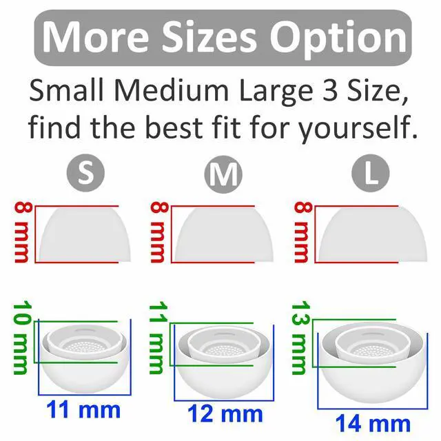 More Size Options, Better Fit Available in 3 different sizes: Small, Medium, and Large, ensuring a comfortable fit for your individual ear shape.