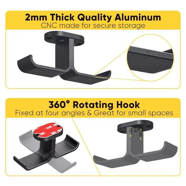 360° ROTATABLE DESIGN Enjoy the convenience of a rotatable headphone hanger with a 360° adjustable design. This dual headphone stand allows you to position your headphones in any direction for easy access and organization.