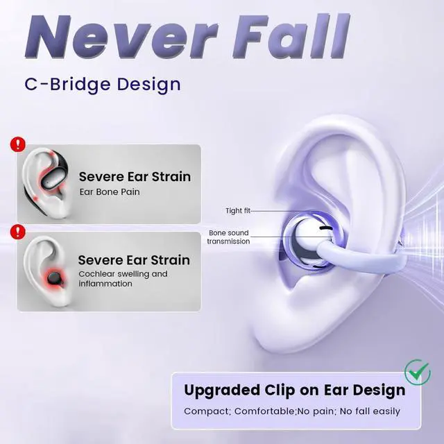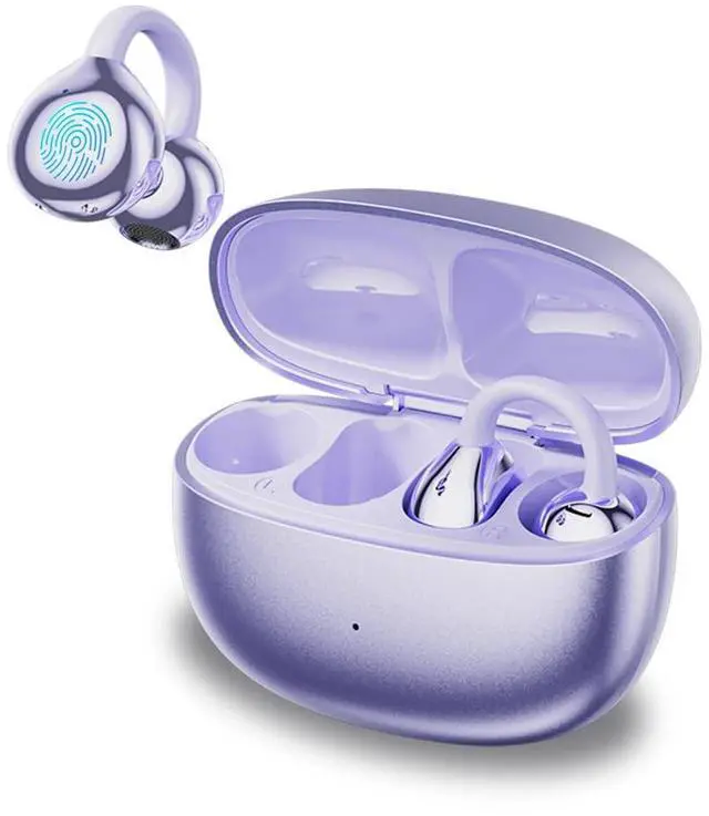 Open Ear Clip Headphones, Wireless Earbuds Bluetooth 5.4 The Over Ear Buds Earphones Built-in Mic with Ear Hooks, 36H Playtime, for iOS and Android (Purple)