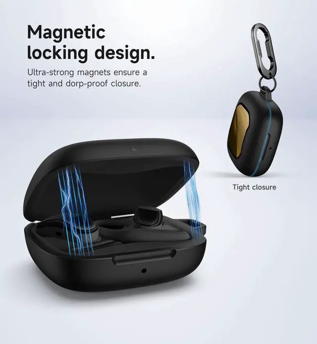 Secure Magnet-LockingBuilt with 4 ultra-strong magnets that snap the top and bottom pieces securely together. This shockproof case ensures your earbuds stay firmly closed, giving you peace of mind whether you're working out or commuting.