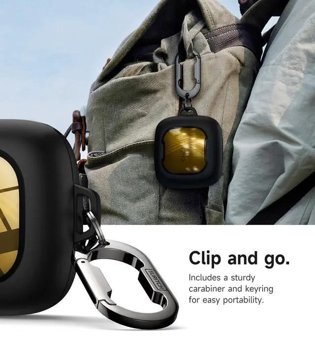 Convenient Clip-on DesignNo more digging through a cluttered bag for your OpenFit Air earbuds; Just clip it to your backpack, belt loop, or keychain with the sturdy, rust-proof carabiner and keyring for easy access on the go.