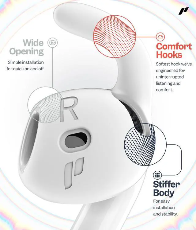 • Soft flexible hooks prevent AirPods from falling out of your ears
