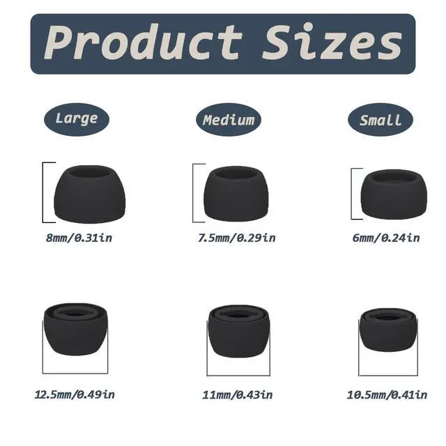 Package: The package includes 6 pairs of Silicone Earbud Tips Replacement. There are 3 different sizes, small, medium, and large, so you can find the perfect fit for your ears. The ear caps meet your different needs, ensuring maximum comfort.
