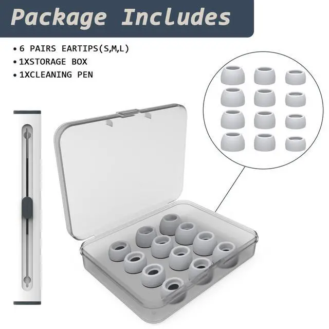 Package: The package includes 6 pairs of Silicone Earbud Tips Replacement. There are 3 different sizes, small, medium, and large, you can find the perfect fit for your ears. The ear caps meet your different needs, ensuring maximum comfort.