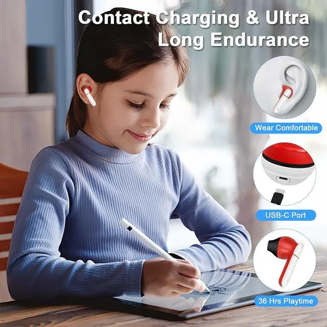 Comfortable To Wear, HiFi Stereo Sound - Designed based on ergonomic research and ear canal testing, the curvature of these earbuds aligns with the natural shape of the human ear, making them especially suited for children and adults with smaller ears. The silicone cap design