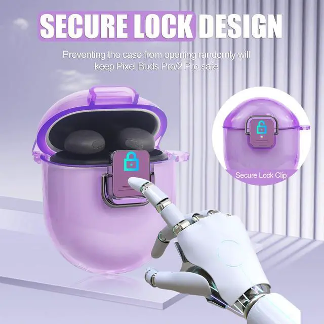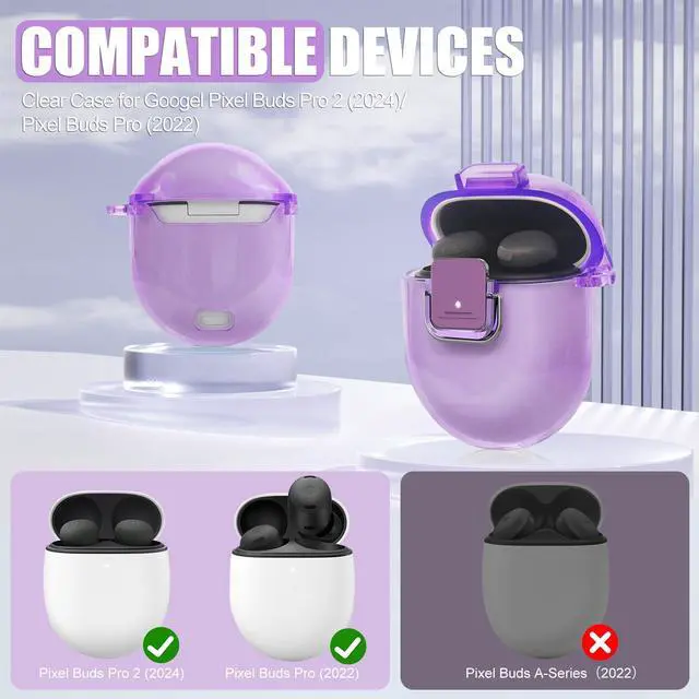 Compatible Device: This clear case with secure lock clip is specifically designed for Pixel Buds Pro 2 (2024)/Pixel Buds Pro (2022) only. The one-piece design ensures that the top cover will not fall off when opened.