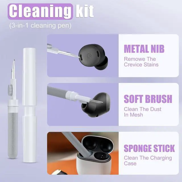 Bonus Tool: Includes a 3 in 1 cleaning pen to deeply clean the charging compartment, the dust inside the net, and the tiny parts and holes of the earplugs, keeping your case looking like new. Comes with a carabiner for easy carrying on your belt, backpack, or keys.