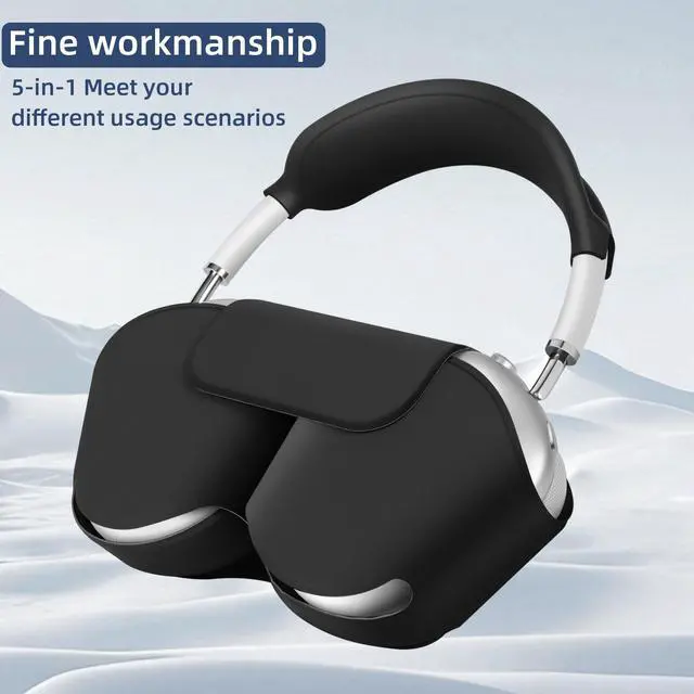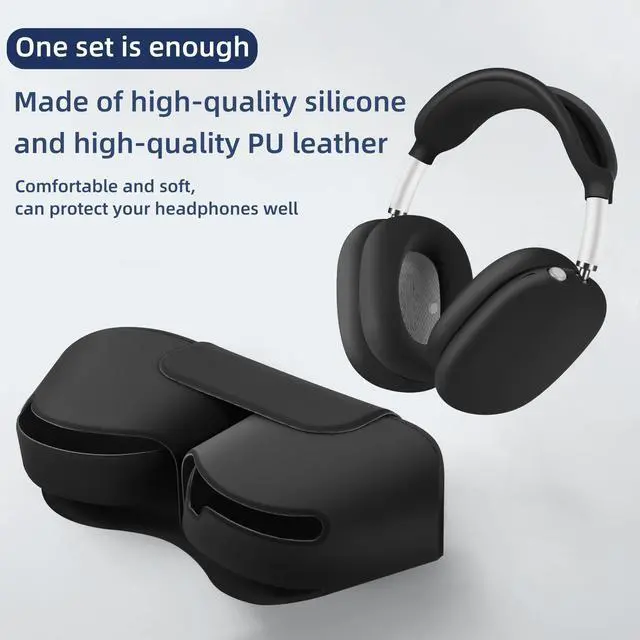 Automatic Smart Sleep & Silicone Four-Piece Set Case5 in 1 Soft PU Leather & Silicone Four-Piece Set Protective Case, Included: For Airpods Max 2/1 (2024/2020), 1x Smart Hibernation Sleeve 1x Ear Pad Case Cover 1x Ear Cups Cover 1x Headband Cover (up & down) (Note: not included for Airpods Max)