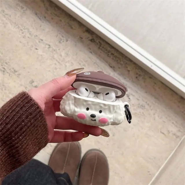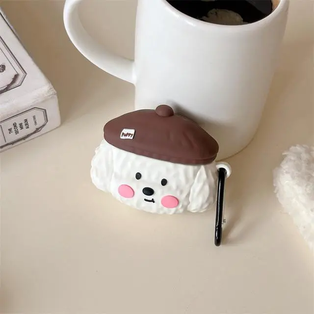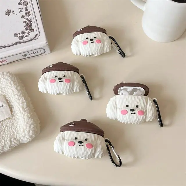 Case Compatible with 2024 Airpods, 3D Cute Kawaii Dog Design Keychain Case Cover, Portable Earbuds Accessories Soft Silicone Shockproof Wireless Earphone Protector White