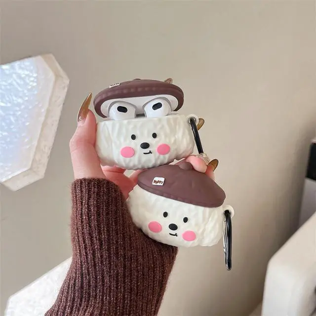 Case Compatible with Airpods, 3D Cute Kawaii Dog Design Keychain Case Cover, Portable Earbuds Accessories Soft Silicone Shockproof Wireless Earphone Protector White