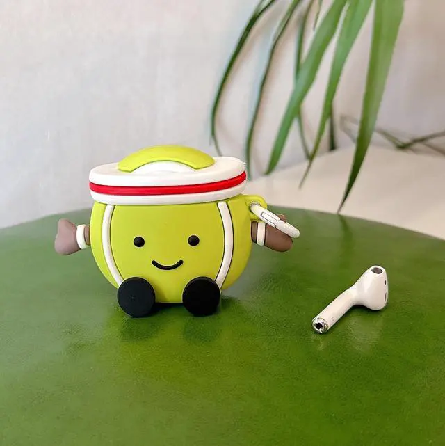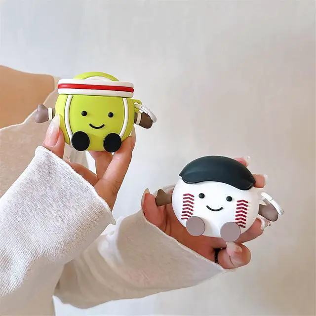 Compatible with 1st / 2nd Generation Case with Keychain, Cute Kawaii Cartoon Design Premium Silicone Shock-Absorbing Protective Case Cover for 2 & 1(Tennis Doll)