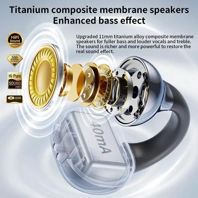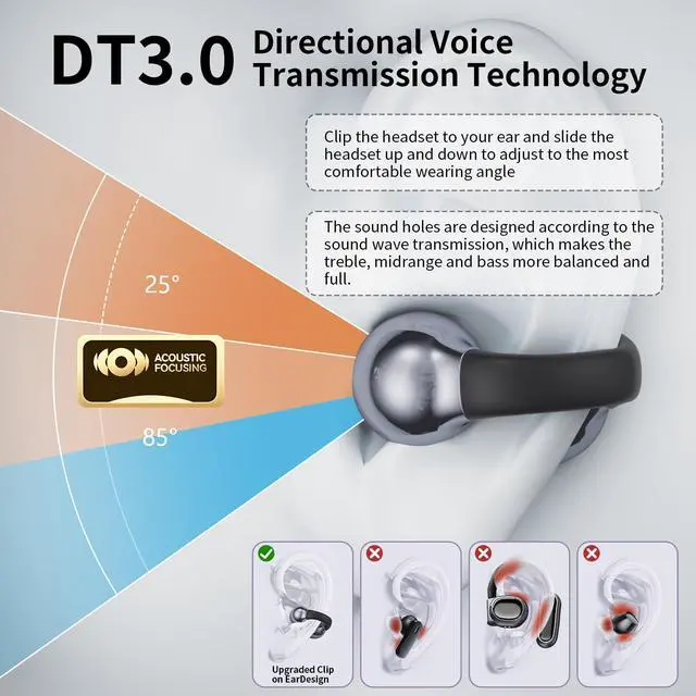 Stylish and lightweight open ear earbuds: These clip-on bluetooth headsets feature a stylish open earbud design, each weighing only 0.17oz, making them lightweight and comfortable to wear while keeping you aware of your surroundings. Ideal for eyeglasses wearers, fitness enthusiasts, and drivers, allowing you to enjoy your music all day long in unrivaled comfort.