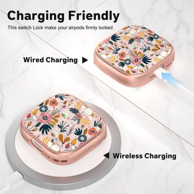 for AirPods 4 Case with Safety Lock, Cute Flower AirPod 4th Generation case Lock for Women Girly with Cleaner Kit Keychain Clip for AirPods 4th Generation Cover 2024, Floral