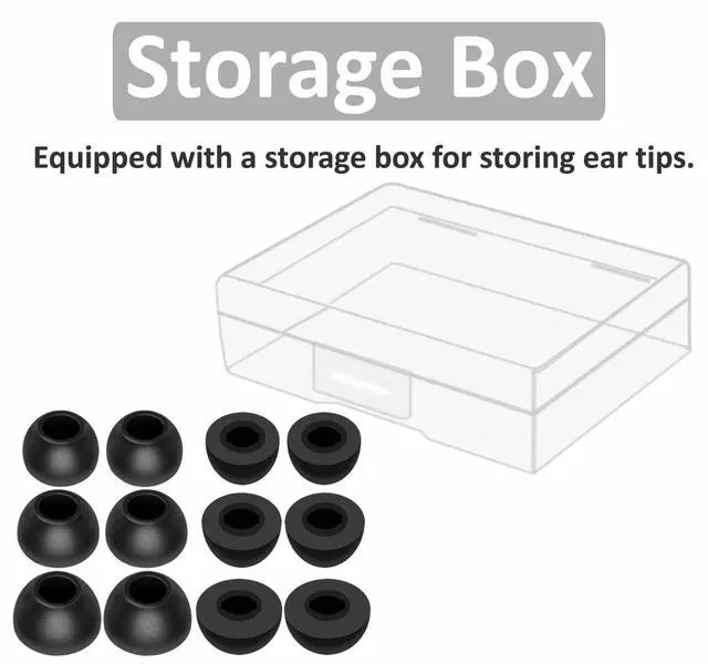 Storage Box Includes a storage box for 6 pairs of ear tips; ear tips only, earphones not included.
