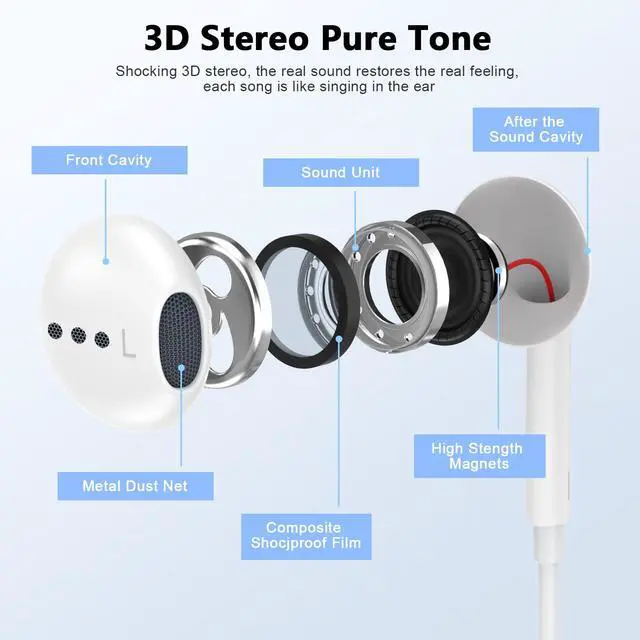 Stronger Wire & Remote Control The wired headphones feature a strengthened cord for enhanced durability. They support Volume+/-, Last/Next Track, Pause, and Call functions, allowing you to enjoy music and manage calls hands-free while on the go.
